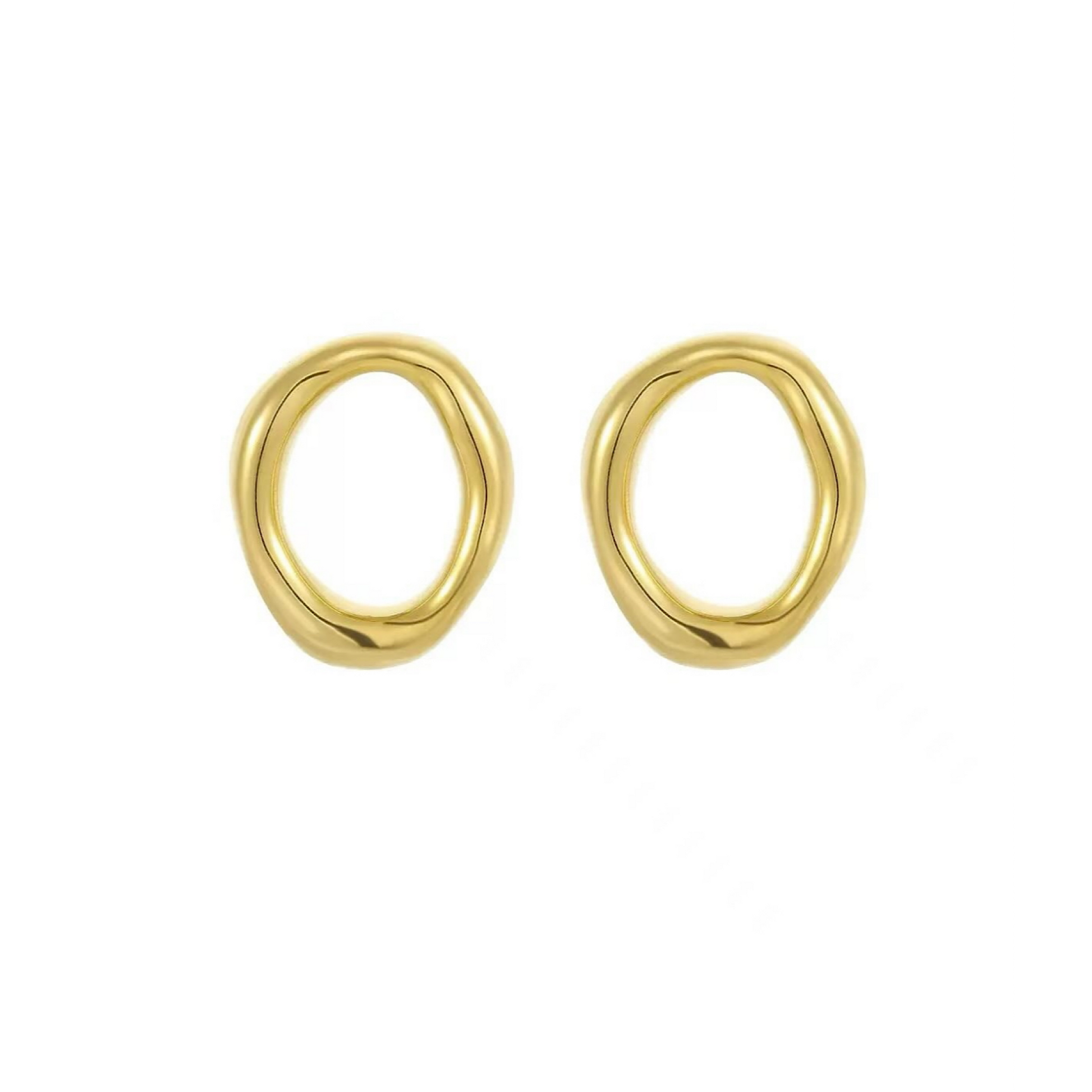 Aretes en forma de O , el material es acero titanio resistente al agua bañados con 6 capas de oro de 18k