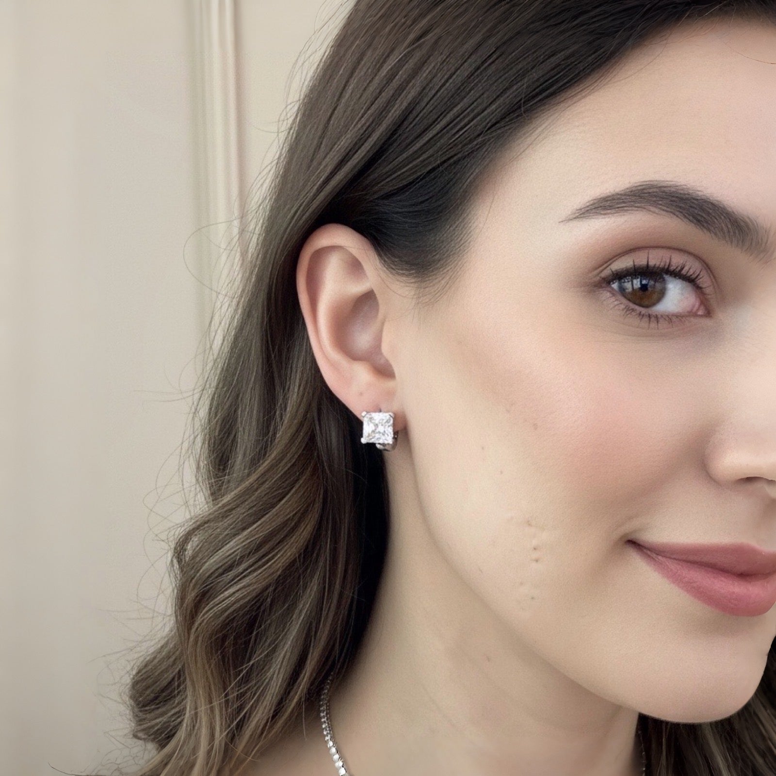 Aretes de cristales con corte princesa lo cual hace que brille súper lindo.