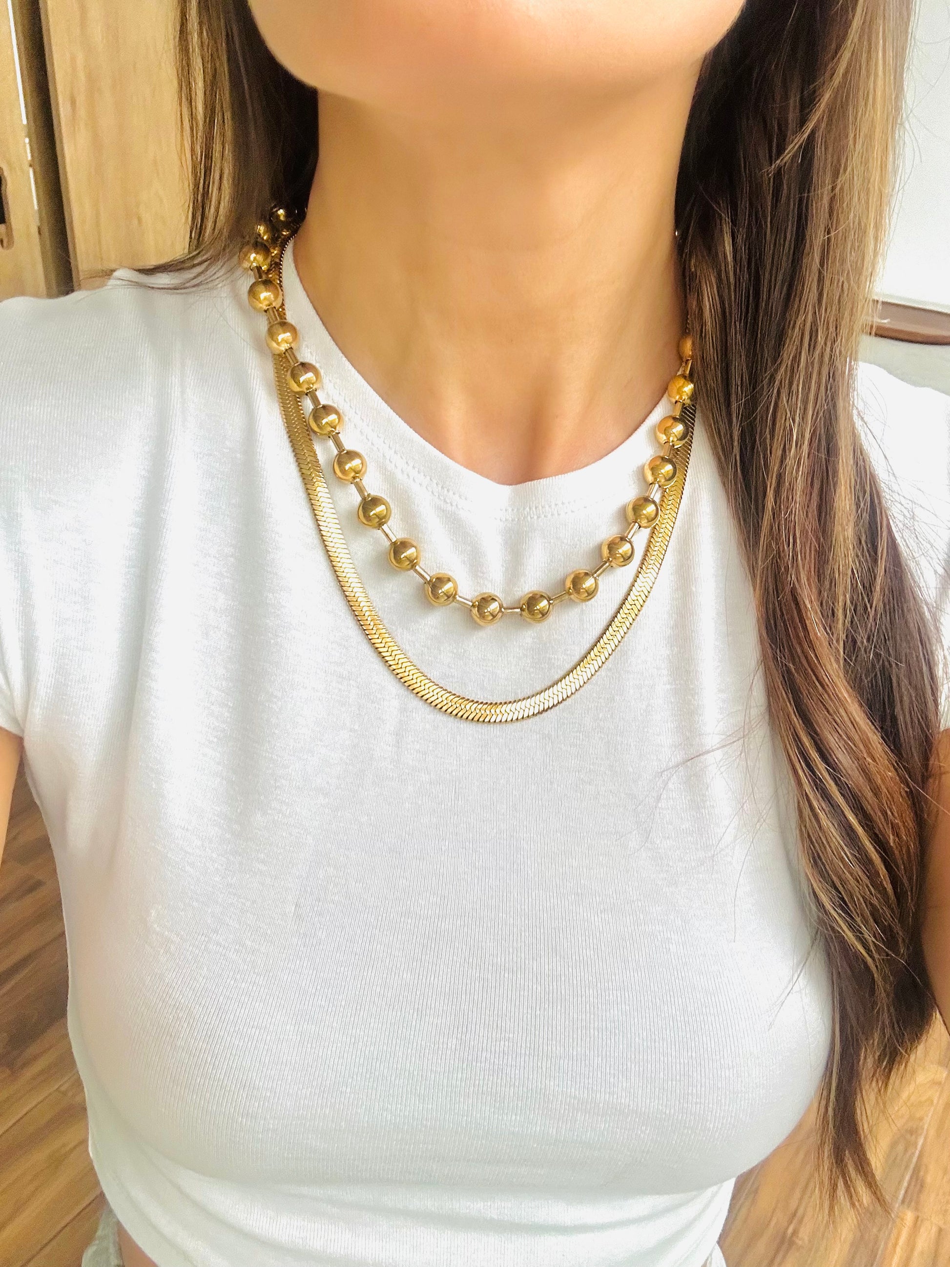 Es una cadena planchada ancha brillosa y muy bonita , versátil para hacer layer y elevar cualquier outfit