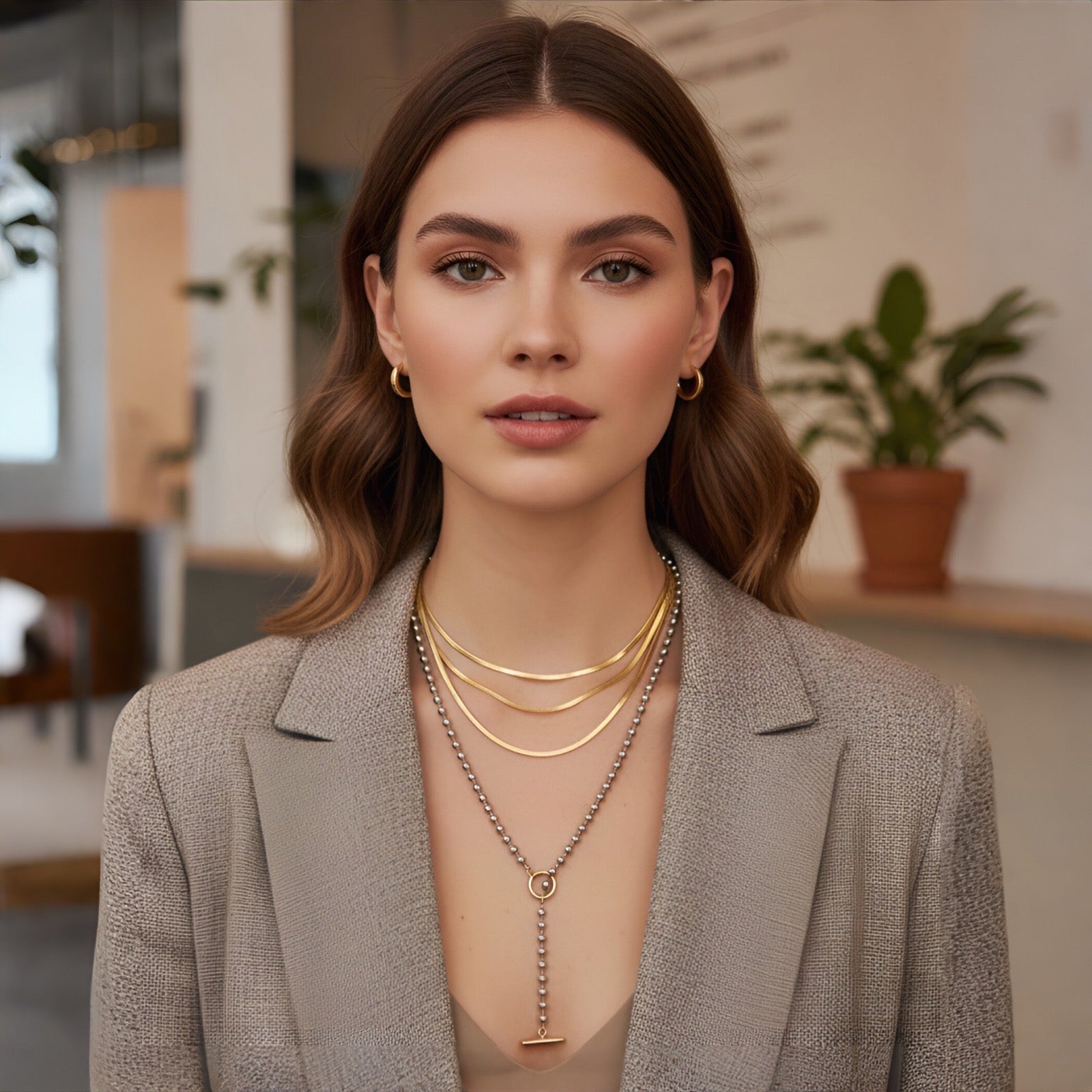 Perfecto para hacer layering o ponértelo solo, piedes darle dos vueltas y ponerlo doble en tu cuello.
